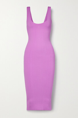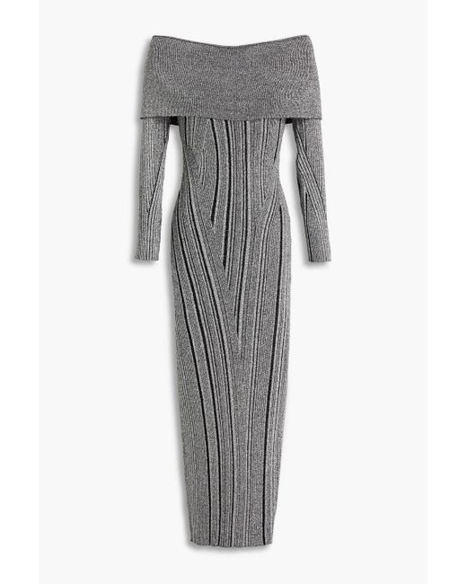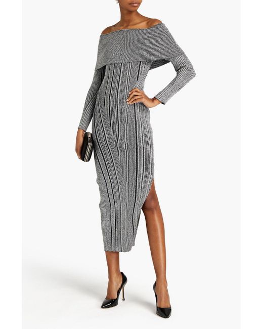 Herve Leger Synthetic Off The Shoulder Ribbed Bandage Midi Dress In Metallic Lyst Australia
